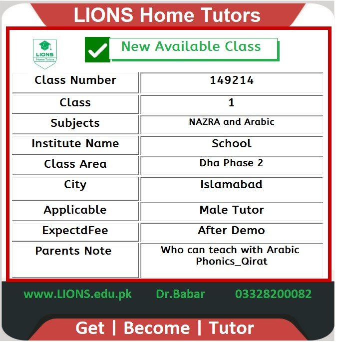 ⭐⭐⭐⭐⭐ Looking for a reliable, experiencedhome tutor for fsc. LIONS Home tutors offer top-notch educational support tailored to your child’s needs. Take advantage of our ONE-DAY FREE trial class and witness the difference! Don’t wait. Call Dr. Babar at 03328200082.